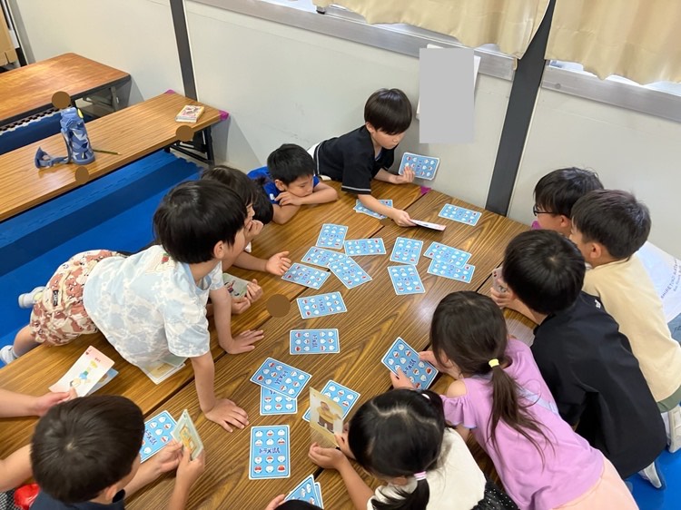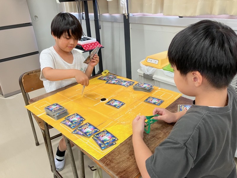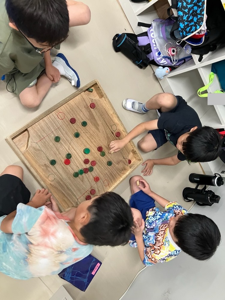 7/31(木)にあそび大会をしました。カロム、ポケモンカード、オセロ、将棋、マンカラ、神経衰弱、ババ抜き、UNOからひとり一つ選んで勝負します。