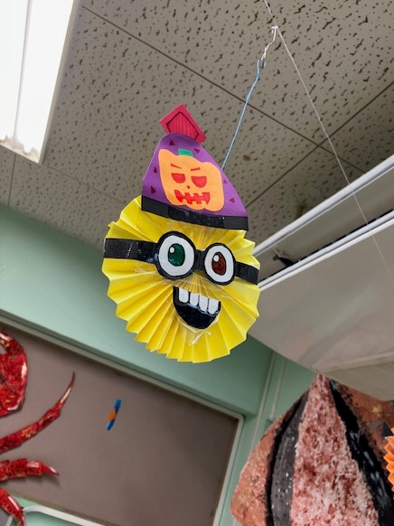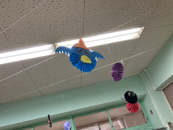 えを始めました。ハロウィン工作として画用紙を屏風状に追って丸くし、モンスターを作