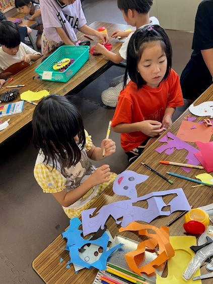 動場を走り回る姿が見られます。来月末にはハロウィンを控え、キラキラのお部屋も衣替