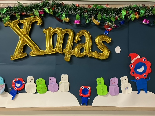 12月になり各教室の壁面はハロウィン仕様からクリスマスバージョン、冬仕様に~~