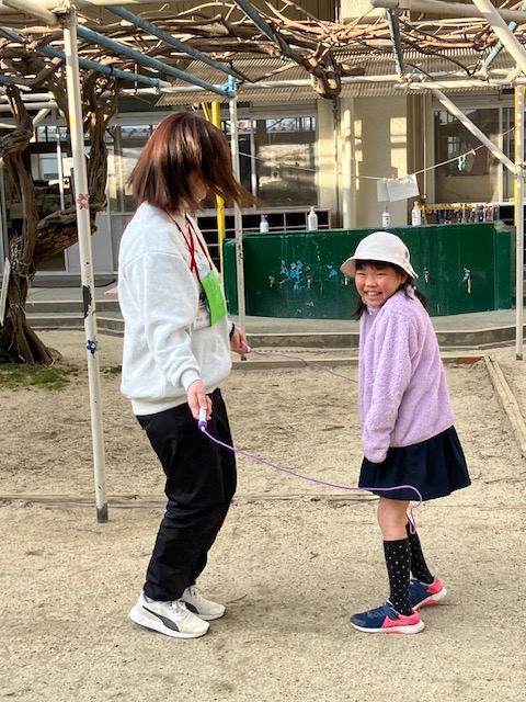 最近はなわとびが大人気。「50回飛べた!!」 「次は100回飛ぶ~/」と挑戦する