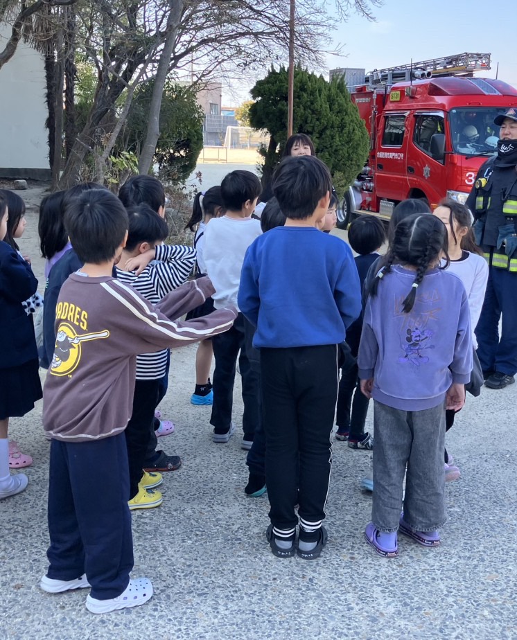 もりぐち児童クラブ佐太 2月の取組み 2026.2.28 年々、日にちが過ぎるのが早く、今年度も残り1か月余りになりました。2月ですが昼間は日差しで寒さを感じない時もあり、天気の時が多いので子どもたちはおやつ後の外遊びを待ち構えています。サッカーや鬼ごっこなど体を動かす遊びを楽しむ子が多く、徐々に汗ばんで中にはトレーナーを脱ぎ出す子も(⁉︎) 寒いとはいえ水分補給も忘れずに取りながら、3年生との残りの時間を楽しんでいけたらと思います。 (避難訓練) 2月4日に(水)に火災避難訓練を行いました。守口・門真消防署から消防士の方々にきていただき、避難の様子を見てもらったり火災や地震についてのお話を聞かせていただきました。「火災です!」の合図で避難開始‼︎支援員の指示のもと、素早く避難先へ向かう事ができ、消防士さんから「合格」をいただきました。その後の地震についてのDVDを鑑賞中、実際に消防署から消防士さんへの出動要請の司令がはいり、乗ってきた消防車でサイレンを鳴らしなが出動する場面も!その後消防士さんが戻ってこられて大事には至らなかったようですが、空気が乾燥しやすいので火の取り扱いには十分気をつけたいものです。 もりぐち児童クラブ佐太のトップへ戻る