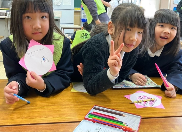 将来の夢を星型の画用紙にそれぞれの夢を描き、宇宙に飛ばしました。