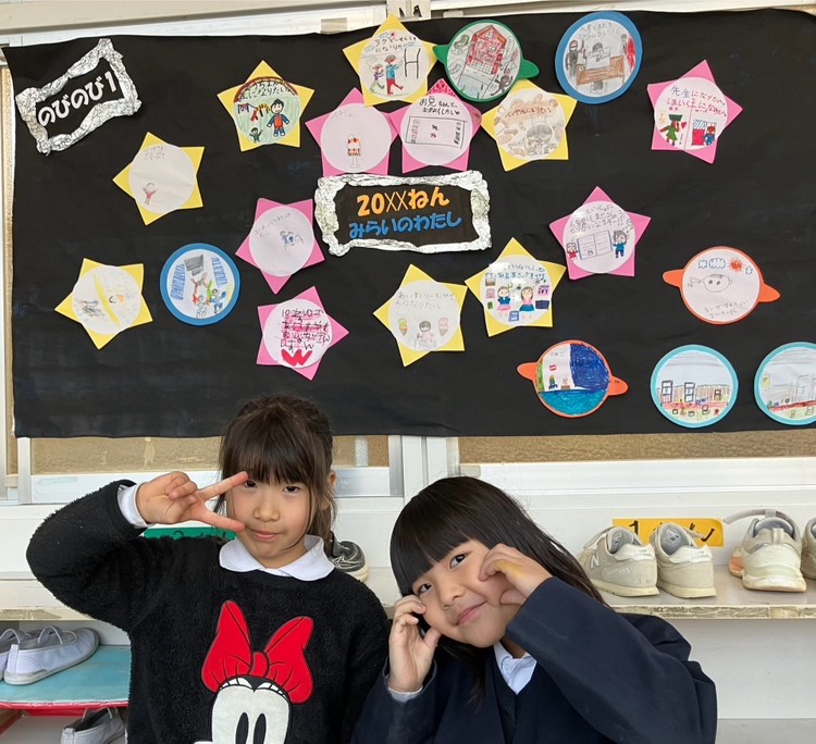みらいのわたしは何をしているのか・・・。しっかりと夢を持っている子、お母さんのようになりたい子、たくさんあって描ききれない子、まだまだ考え中の子・・・