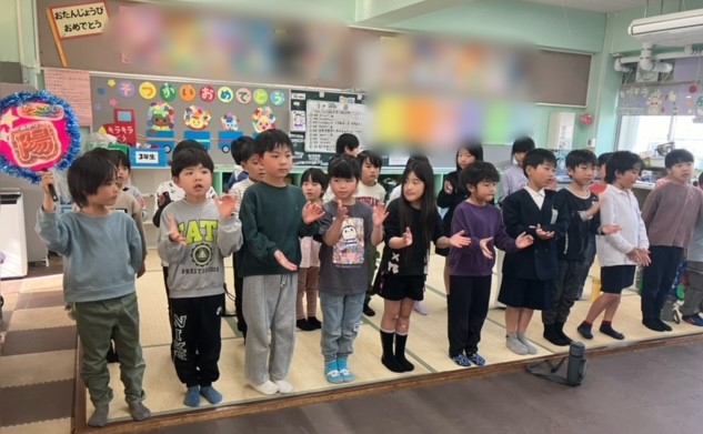 3年生の銭太鼓は新曲で来年度に引き継ぐため、お手本となる動画を最高の演技で残そうと一生懸命に練習しています。1・2年生はそれに応えるように、お別れ会の呼びかけの練習をがんばっています。さみしいけれど、キラキラクラブの仲間の絆が日々強くなるのを感じています。